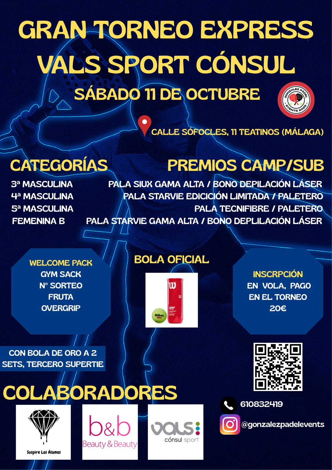 Soy organizador de un torneo amateur con distintas categorias que tendrá lugar los dias 8 y 9 de marzo en Vals sport cónsul. Podeis poneros en contacto conmigo, gracias