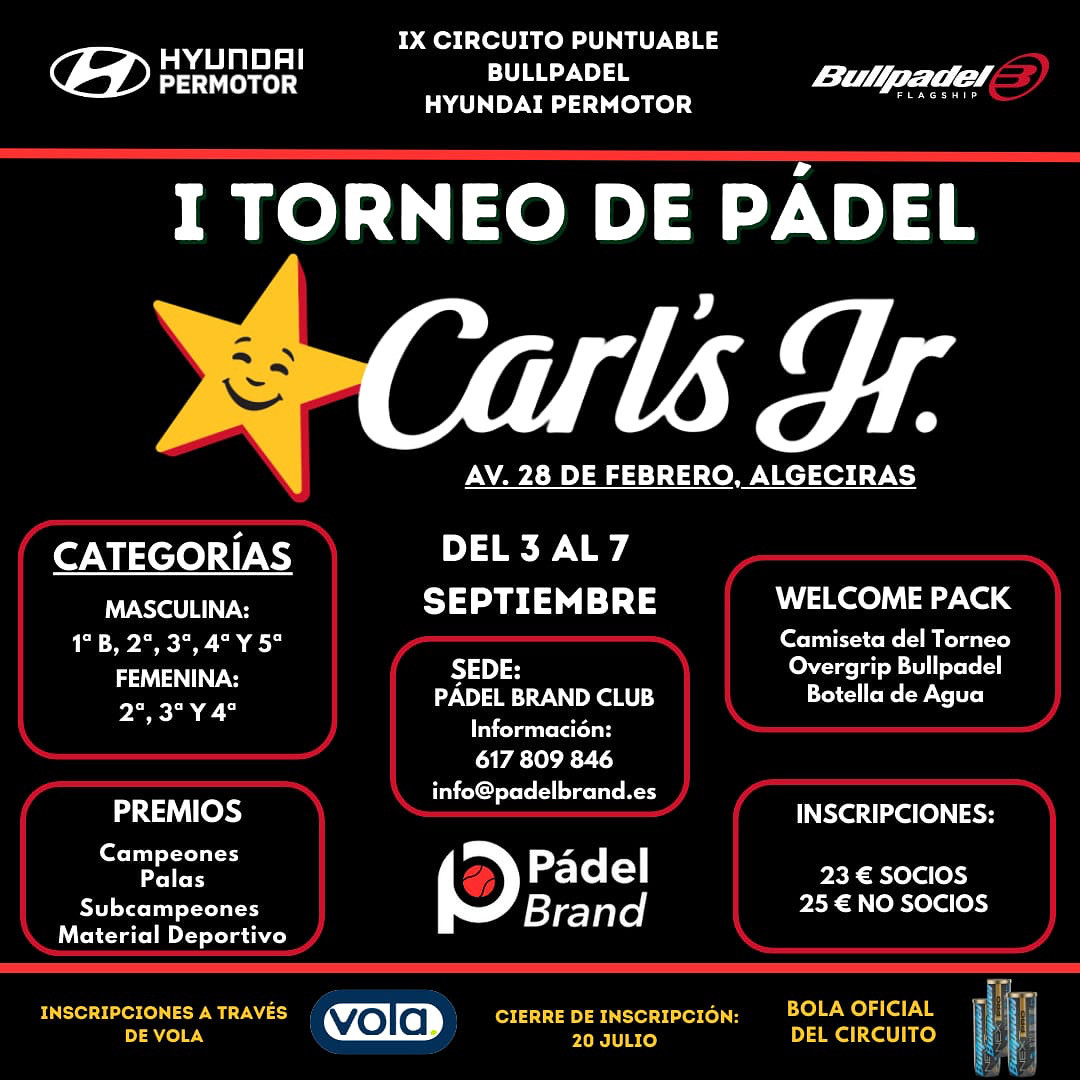 I TORNEO DE PÁDEL CARL´S JR - 7ª PRUEBA PUNTUABLE CIRCUITO BULLPADEL HYUNDA