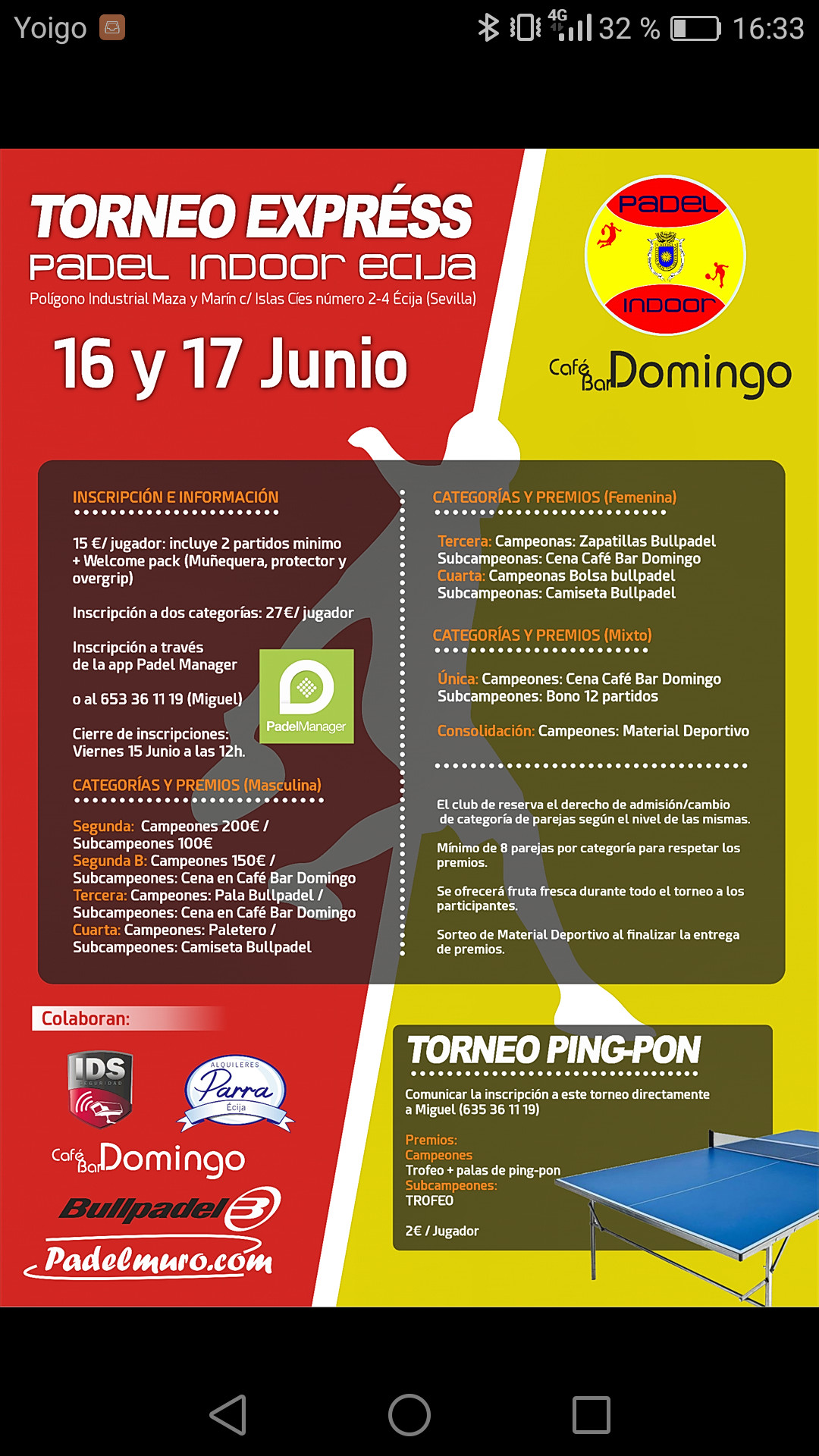 TORNEO "EXPRÉSS" PADEL INDOOR ÉCIJA